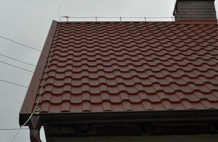 Одно из ключевых преимуществ — экономичность: материал дешевле натуральной черепицы, но служит до 30 лет. Легкий вес (около 5 кг/м²) упрощает транспортировку и монтаж, снижая затраты на рабочую силу. Цвет RAL 8017 маскирует загрязнения, сохраняя вид крыши опрятным. Кроме того, металлочерепица экологична, подлежит переработке и не выделяет вредных веществ.