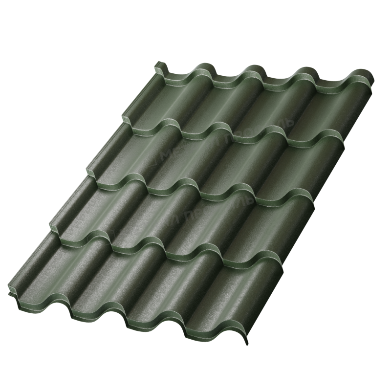 Покрытие VikingMP® — это матовая полимерная защита на основе полиэстера, разработанная для повышения стойкости к коррозии и ультрафиолету. Оно наносится на стальную основу толщиной 0,45 мм, обеспечивая гладкую текстуру, которая минимизирует накопление грязи и снега. В цвете RAL 6007 покрытие приобретает глубокий зеленый оттенок, напоминающий лесную листву, что гармонично вписывается в природные ландшафты. Толщина слоя составляет около 35 мкм, что гарантирует защиту от механических повреждений и выцветания на протяжении многих лет. Это покрытие также обладает повышенной эластичностью, предотвращая растрескивание при температурных колебаниях.